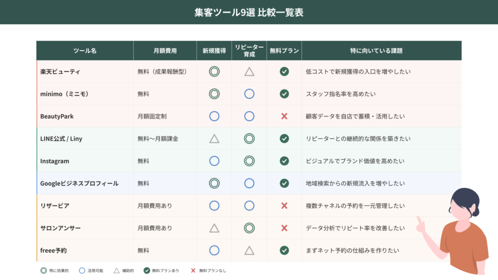 • 新規獲得を強化したい → 楽天ビューティ・minimo・Googleビジネスプロフィール